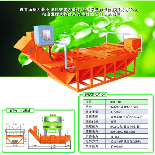 DONG SEO洗轮机成立于1983年, 采用全自动洗轮方式, 车辆进出时, 通过感应器装置自动感应达到超高速的全自动洗轮方式