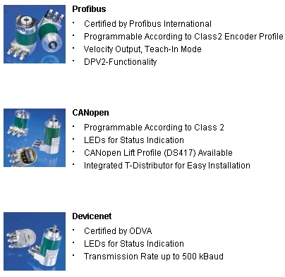 Absolute Encoders > Home Applications Technology Certificates Product Overview OPTOCODE - Absolute Optical Rotary Encoders Optical Absolute Encoders are characterized by a high precision and dynamics. Resolution Per Revolution up to 16 Bit (65536 Steps) Up to 16384 (14 bit) Revolutions With Mechanical Gearing, No Battery Back Up Operating Temperature -40 to +85 °C Environmental Protection IP 65 Enclosure and IP 66 Flange Hollow Shaft or Solid Shaft Flanges Stainless Steel and Explosion Proof Encoders Available UL Certified MAGNETOCODE - Absolute Magnetic Rotary Encoders Low cost magnetic encoders can be used in a wide range of Applications 12 Bit Resolution per Revolution 13 Bit Revolutions, Others Upon Request Operating Temperature -30 to +70 °C Environmental Protection IP 54 - IP 65 EXAG - Explosion Proof Absolute Rotary Encoders Certification according to EX II 2 G/D Eex d II C T6 Heavy Duty Industrial Model up to 8192 Steps per Revolution up to 16384 Revolutions available with SSI or Fieldbus Interface Accessories Cable Pull Adapters Mounting Device Heavy Duty Enclosure Miscellaneous