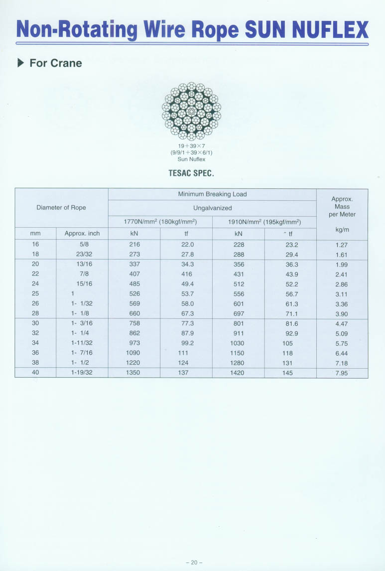 TESAC钢丝绳 Non-Rotating Wire Rope SUN NUFLEX